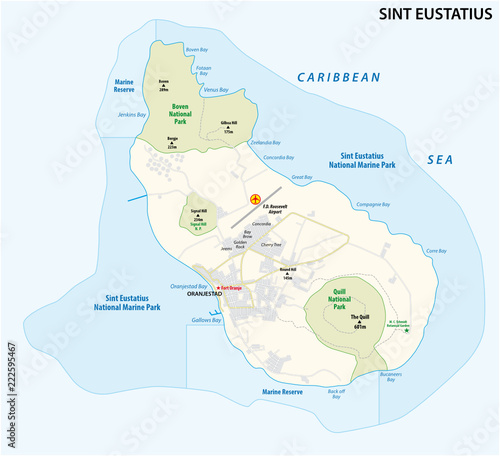 © lesniewski, Obraz premium Sint Eustatius road and national park vector map.