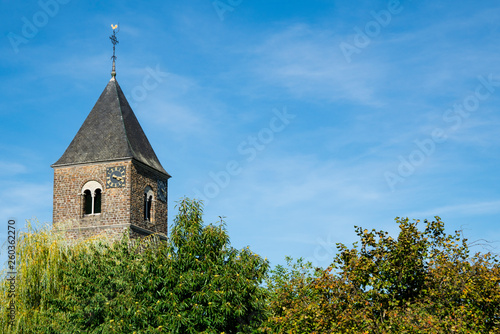 © Corinne, Fototapeta premium Sint Pancratius Church in Mesch, The Netherlands. Blue sky, space for text