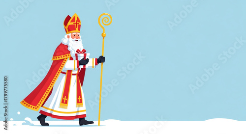 Obraz premium Sinterklaas with gift box, Dutch Saint Nicholas day in Netherlands. Greeting...