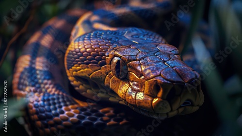 Fototapeta premium Sinuous Anaconda snake macro. Female pets. Generative AI