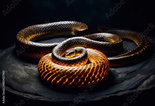 © Yaroslava, Obraz premium sinuous snake coiling illuminated runic stone dark setting, glowing, shining, radiant, bright, luminous, shimmering, sparkling, gleaming, dimly, dim