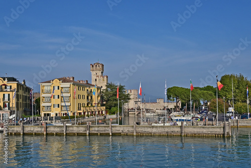 © lamio, Fototapeta premium Sirmione, il Castello Scaligero ed il lungolago - Lago di Garda, Brescia