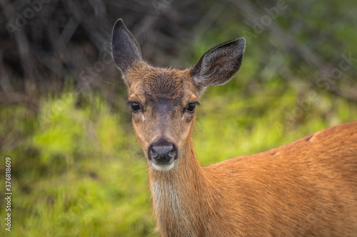 Fototapeta premium Sitka Black-Tailed Deer Doe Amongst Tall Grass