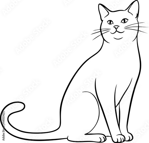 © petokpetok, Obraz premium Sitting Cat Line Art Illustration Minimalist Black and White Drawing