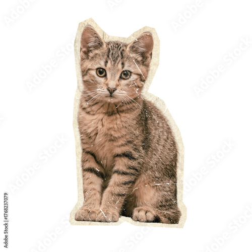 © Gempa, Obraz premium sitting cat on scrapbook collage