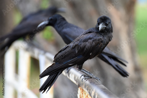 © hnphotography, Naklejka premium sitting crows, seen in the Lumphini Park, Bangkok, Thailand