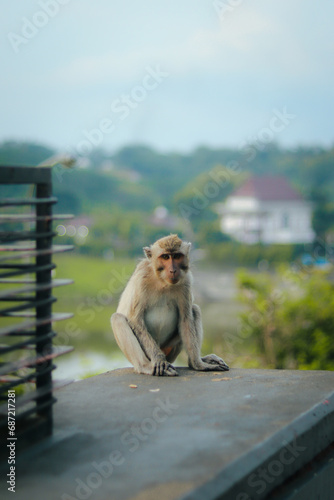 © isn, Fototapeta premium Sitting monkey in the national park