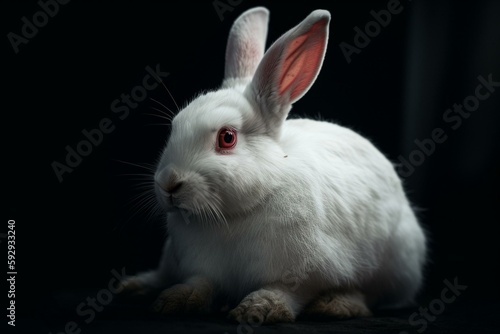 Obraz premium Sitting red-eyed white rabbit. Generative AI