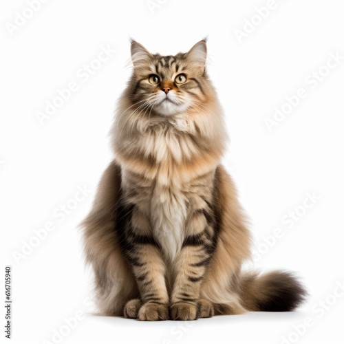 Obraz premium Sitting Siberian Cat. Isolated on Caucasian, White Background. Generative AI.