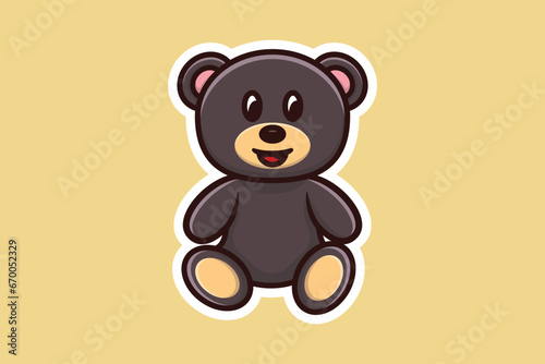 © Ahsan, Naklejka premium Sitting Teddy Bear Front View Sticker vector logo design. Animal nature icon design concept. Bear cartoon character sticker design logo with shadow.
