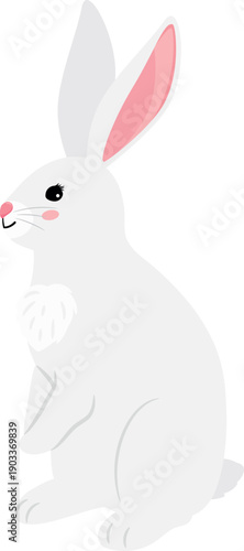 Fototapeta premium Sitting white rabbit. Spring holiday cartoon mascot