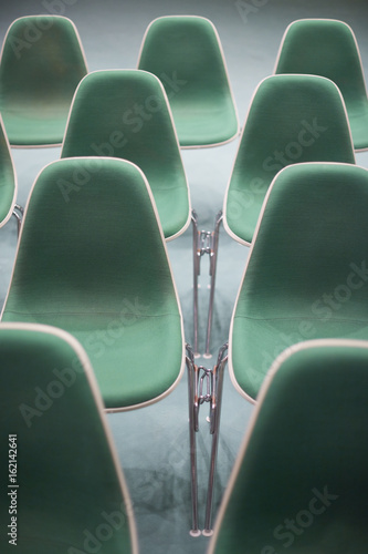 Obraz premium Sitzreihen mit grünen Stühlen