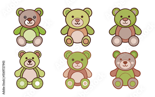 Obraz premium Six adorable teddy bears in green and brown tones