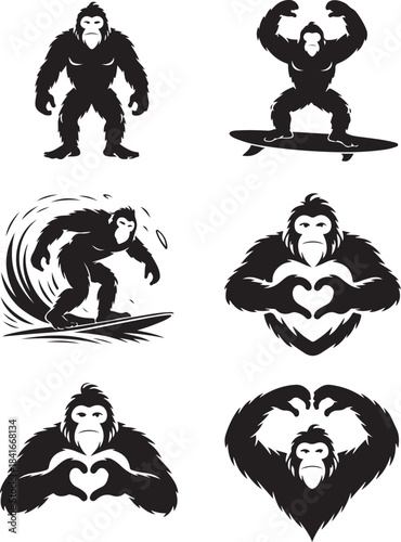 © BINDASBIPLOB, Fototapeta premium Six black bigfoot mascot logo designs