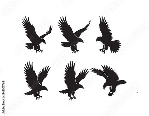 Obraz premium Six Black Eagle Silhouettes Vector Illustration Flying