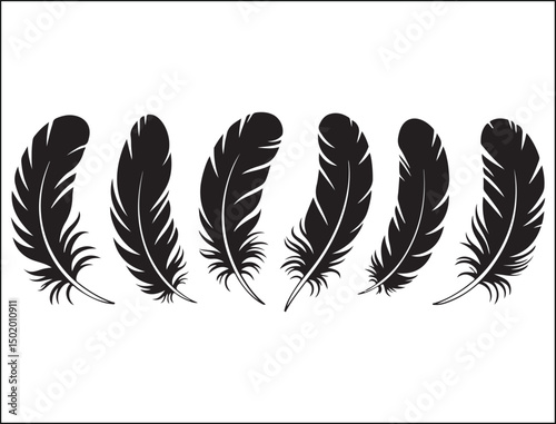 © HOSSEN, Obraz premium Six Black Feather Silhouettes on White Background
