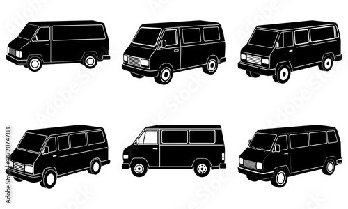 Fototapeta premium Six Black Vans Silhouettes on White Background transportation