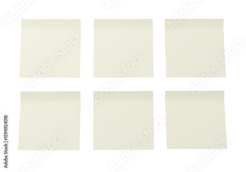 Fototapeta premium Six blank, off-white, square paper notes with subtle curled edges, precisely...