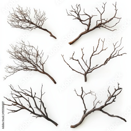 © Mandeep, Obraz premium six brown tree branches on a white background