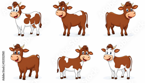 Fototapeta premium Six cartoon cows in various brown and white patterns