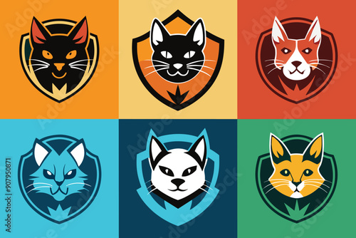 © Myartsam Design, Fototapeta premium Six Colorful Cat Heads Inside Shields