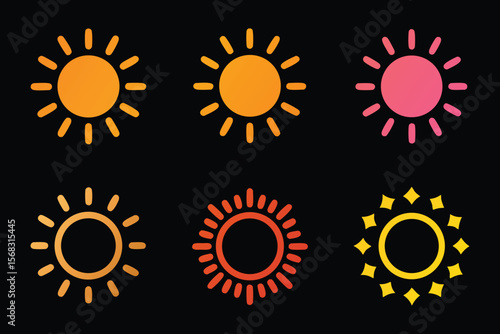 Fototapeta premium Six Colorful Sun Icons Set on Black Background