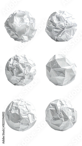 © Kika, Fototapeta premium Six crumpled, white paper balls against black backdrop