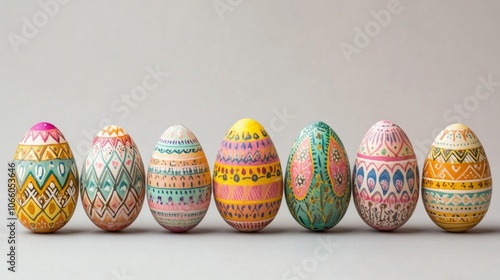 © Fomo Creative, Fototapeta premium Six Decorated Easter Eggs with Intricate Patterns