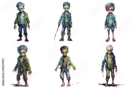 Naklejka premium Six Depiction of Child Zombies in Various Poses