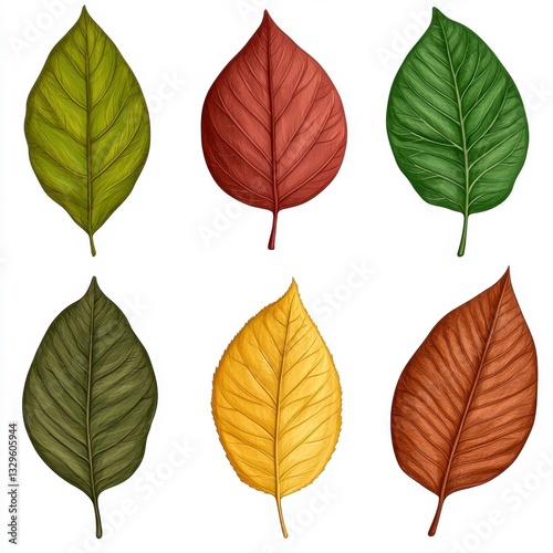 Obraz premium Six Detailed Autumn Leaves in Various Colors on White