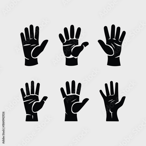 Obraz premium Six different hand gestures isolated on white background, Vector, illustration