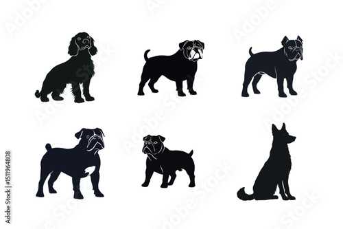 © ABDUL, Naklejka premium Six dog breed silhouettes black and white