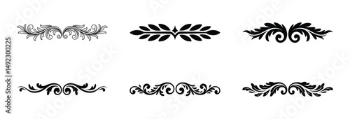 Obraz premium Six elegant black floral swirls and leaf dividers