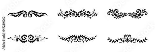 © TopW59, Fototapeta premium Six elegant black floral swirls design elements