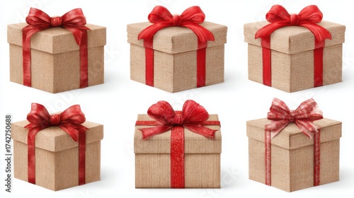 © nameera_hasan, Obraz premium six gift boxes with red bows