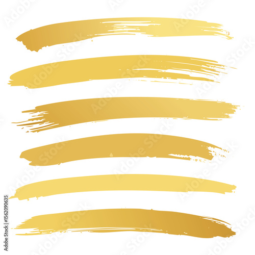 Obraz premium Six golden brush stroke lines with textured edges on white background paint