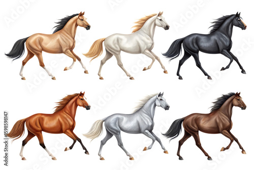 © PopiRani, Obraz premium Six horses in motion on black isolated on a transparent background