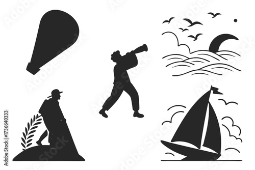 © MD, Fototapeta premium Six minimalist dreamscape icons in black and yellow cyan magenta