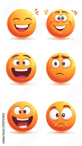 © Ardhana, Fototapeta premium Six orange emoticon faces showing different emotions.