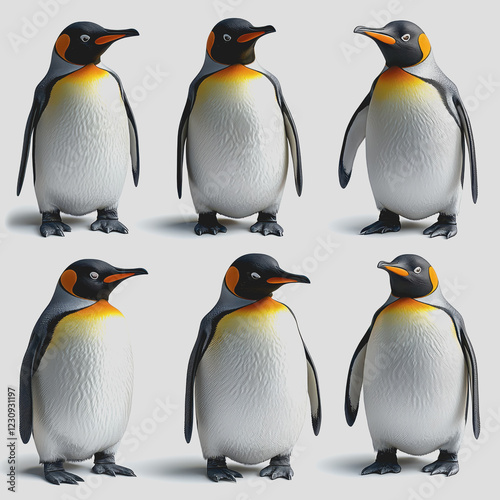 © PHAISITSAWAN, Fototapeta premium Six penguins of various colors and sizes standing together on ice in natural habitat