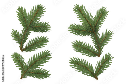 © Michael, Naklejka premium Six photorealistic illustrations of fir branches, perfect for christmas or nature-themed designs, isolated on a transparent background