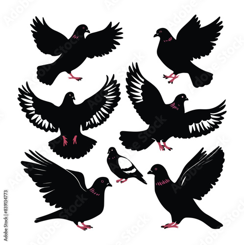 Obraz premium Six-set Pigeon silhouette on white background vector illustration.