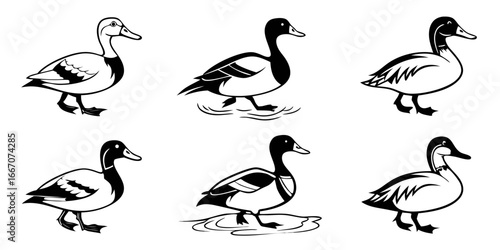 Fototapeta premium Six Stylized Black and White Duck Illustrations