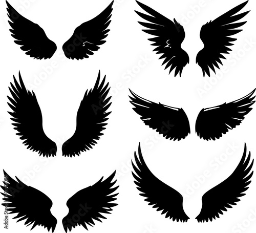 © Stockbundles, Obraz premium Six stylized black angel wings, perfect for graphic design.