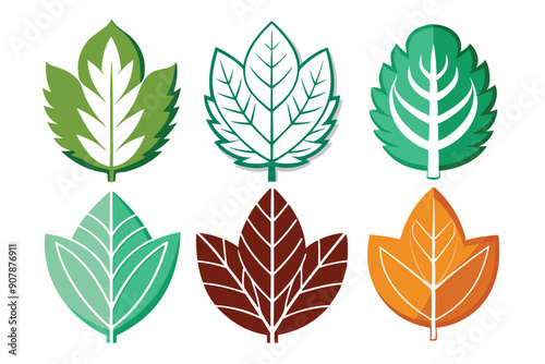 © Myartsam Design, Fototapeta premium Six stylized leaves with different colors and patterns