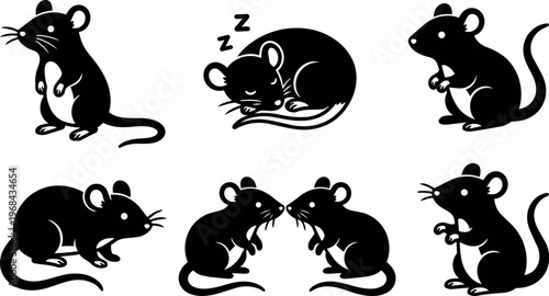 Fototapeta premium Six stylized mice including sleeping and standing poses