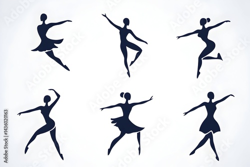 © halimatus, Fototapeta premium Six stylized silhouettes of ballerinas in various graceful poses