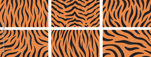 Obraz premium Six unique tiger skin print patterns, various styles Vector Art.