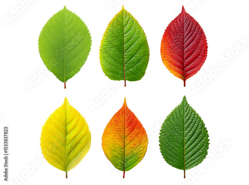 Obraz premium Six vibrant autumn leaves isolated on black background, Isolated On Transparent Background