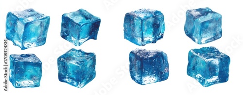 Obraz premium Six vibrant, translucent, blue ice cubes